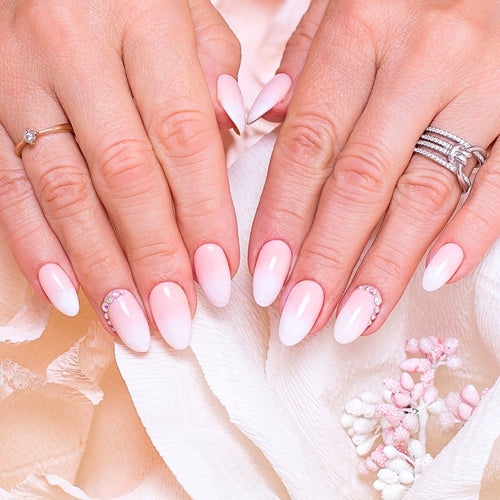 To prevent air bubbles under your nails, apply a good amount of glue on the nail bed — make sure it doesn’t overflow onto the cuticle. Press the artificial nail down at the cuticle area first, then lay down the rest of the nail. Hold firmly for 20 seconds to ensure a smooth, bubble-free finish.